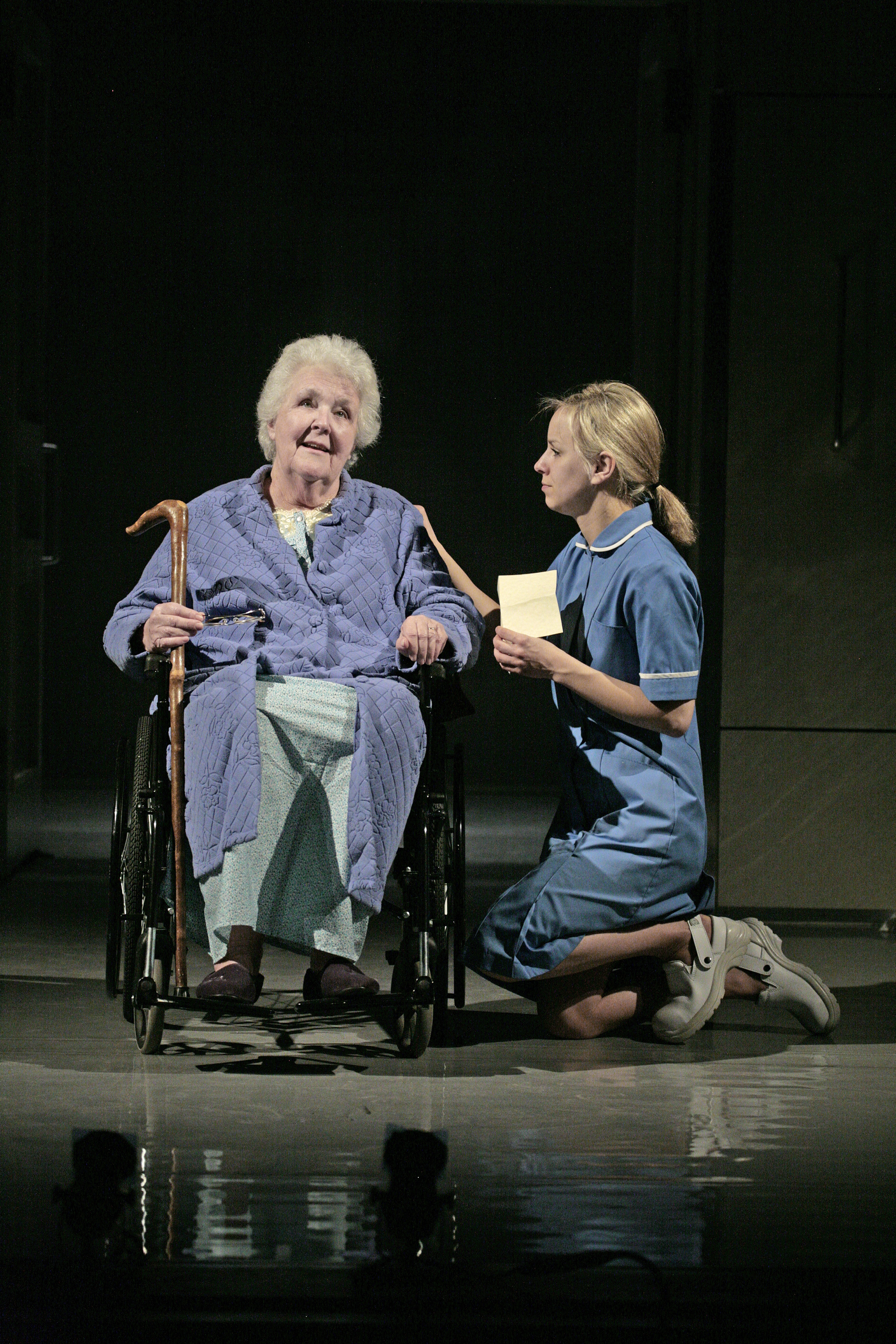 Iris is at the play’s selfless heart. Her absolute, principled, and dear refusal to leave NHS care means she is immune to what afflicts it. Peerless Stephanie Cole cannot be touched in the role. Similarly, Natalie Klamar as Nurse Gina from God knows where – possibly Poland, maybe Serbia – has an angelic part, made all the sweeter when she explodes in effing fury at the specious ‘Culture’ of shitty spending cuts.