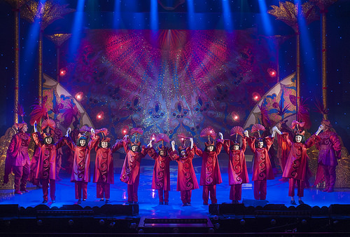 So dump the suspense and bring on the dancers, young and old, and give in to the moment, to the scene painting, to the costumes and to the out and out marvellous: the Vanishing Princess, Escape from the Table of Death, and an absolutely wicked, jaw dropping, example of Defying Gravity. Then enter, upstage and tall, the Mighty Nasty Cobra and the Giant Genie (a very droll, almost child-friendly Malcom Tucker). Take hold, my son, of the The Lamp of Amazing Power. Capital!