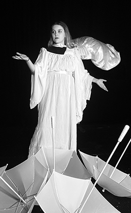 Our version of Agnes’ story encapsulates several topics of interest to our company – artistic and historical legacy, forgotten stories, adaptation, staging time travel and revenge, to name a few. These concepts echoed our prior interest in staging the impossible, subverting narrative structure and exploring themes and stories from unfamiliar perspectives. In our previous show, we staged a character eating a dead mouse – this time we want to send a woman through time, perform miracles and bring paintings to life.